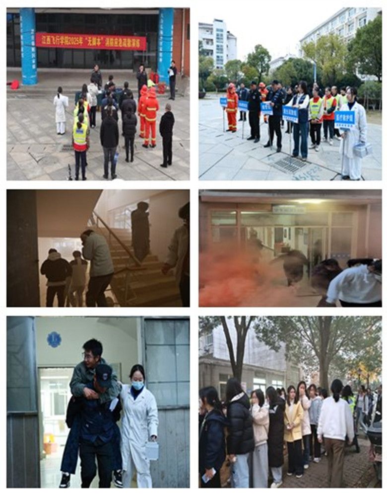12月5日,学校保卫处联合飞行技术学院举行2025年下半年“无脚本”应急疏散逃生演练。飞行技术学院和各职能部门师生400余人参加了演练。